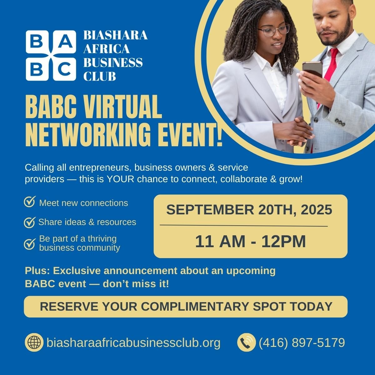 15 Clubhouse Court Toronto, ON M3L 2K5 15 Clubhouse Court , ON, Toronto, Onario, CanadaOur speaker for May 18th Networking Session: Record keeping and tax saving for small businesses By. Dr. Abdallah Swaleh Namusasi PhD, CPA, CGA, FCCA Founder and Chief Financial Officer SNA Accounting and Tax Consulting CPA Professional Corporation Join us for an exciting networking session hosted by Biashara Africa Business Club! This in-person event will be […]